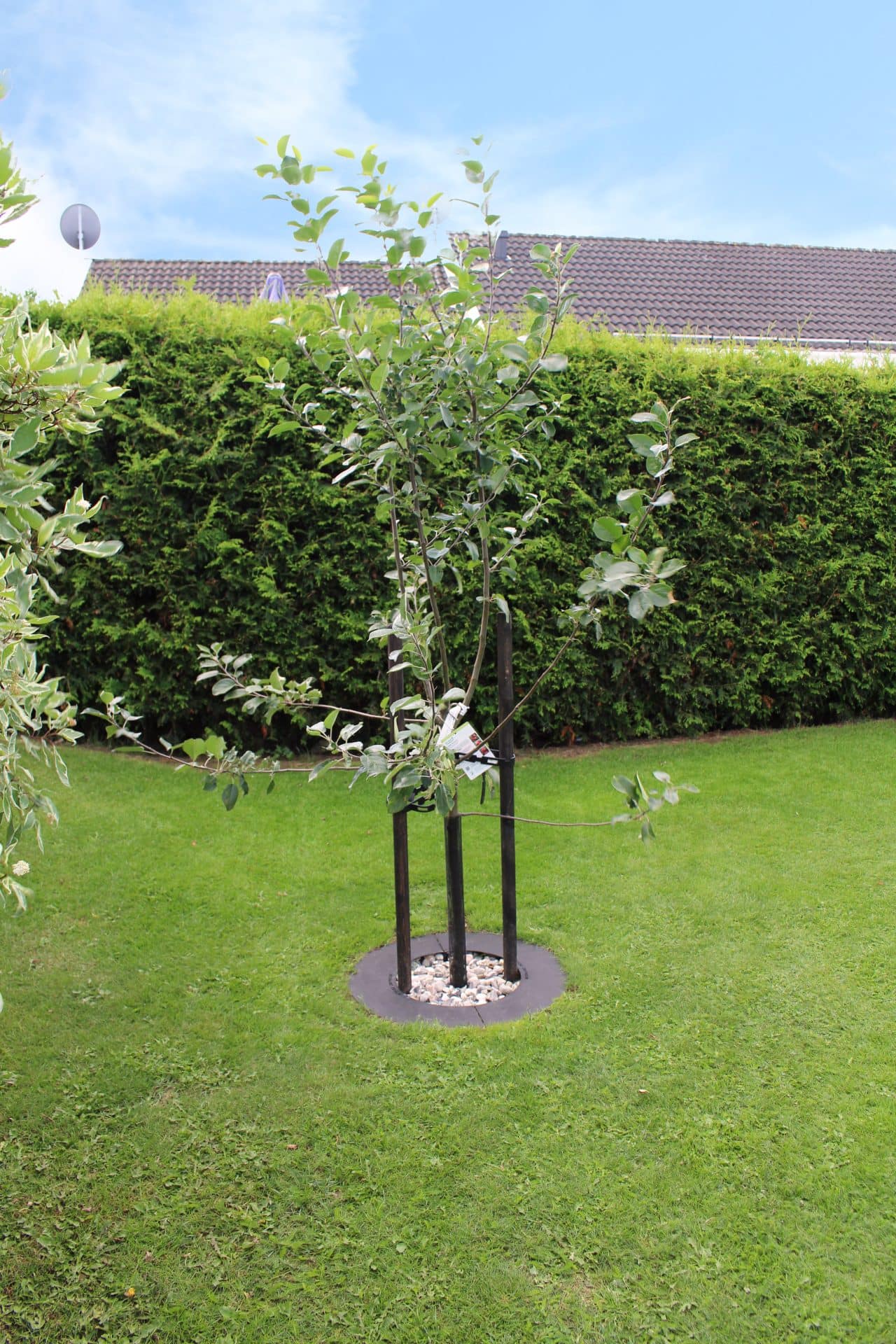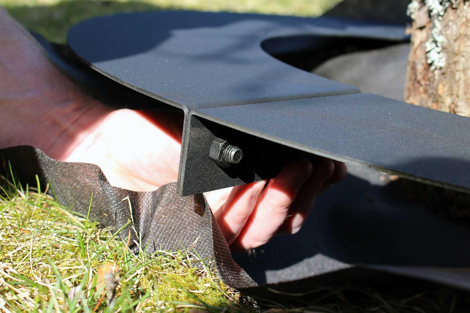 – Montera robotringen runt trädet genom att skruva ihop halvorna.